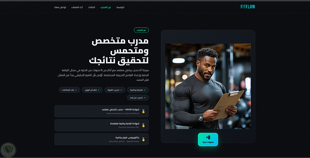 هو موقع إلكتروني متكامل مصمم لمساعدة المدربين الرياضيين على إدارة أعمالهم وتقديم برامج تدريبية مخصصة لعملائهم بشكل احترافي. يتميز الموقع بواجهة مستخدم جذابة وسهلة التنقل، تتيح للمشتركين اختيار الباقات التدريبية التي تناسب أهدافهم المالية والرياضية.