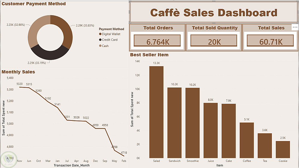 عملت في هذا المشروع لمساعده صاحب كافيه للتأكد من الارباح و استخراج بعض المعلومات مثل اكثر المتجات طلباً و اقلها و اكثر تحقيقاَ للأرياح