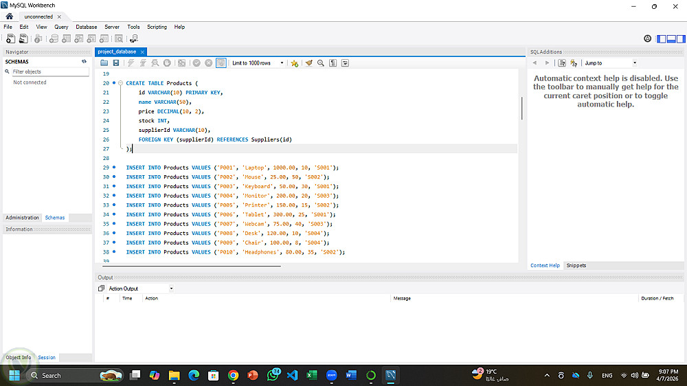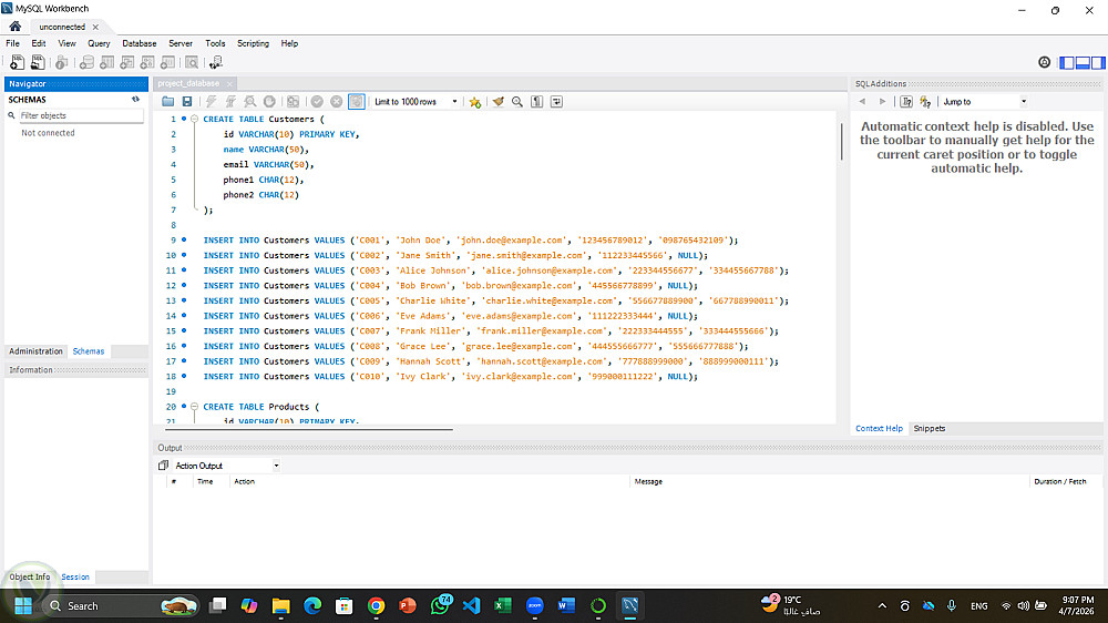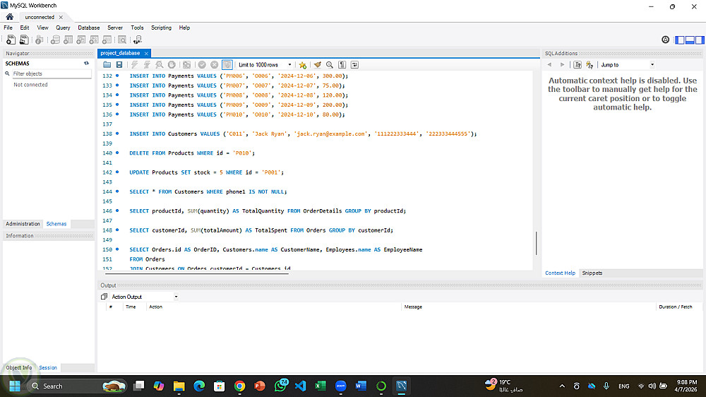 قاعدة بيانات لمتجر تحتوى على المنتجات و العملاء و تفاصيل الطلبات
