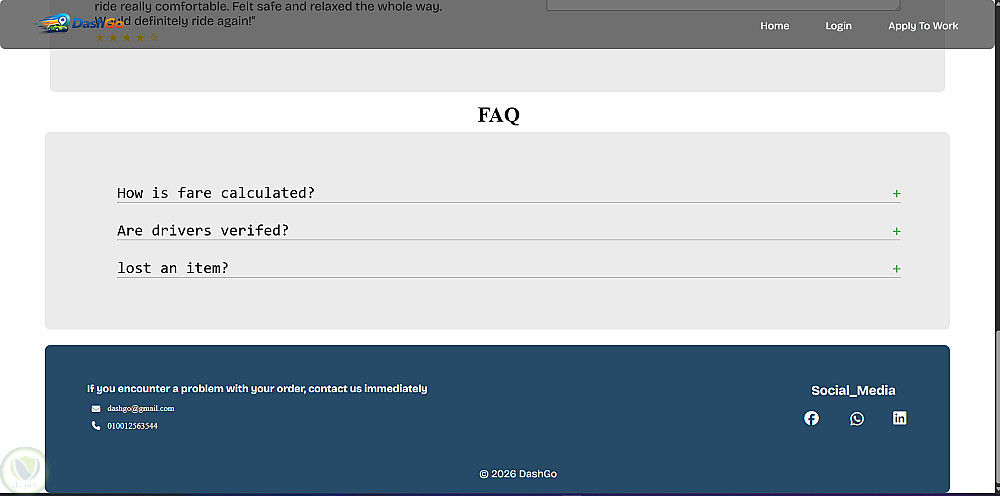 تطوير واجهة مستخدم تفاعلية لمنصة DashGo التي تهدف إلى تسهيل عملية حجز الرحلات الفورية والمجدولة. تم التركيز في هذا المشروع على تقديم تجربة مستخدم (UX) سلسة تبدأ من الصفحة الرئيسية، مع ضمان استجابة التصميم لكافة الشاشات.