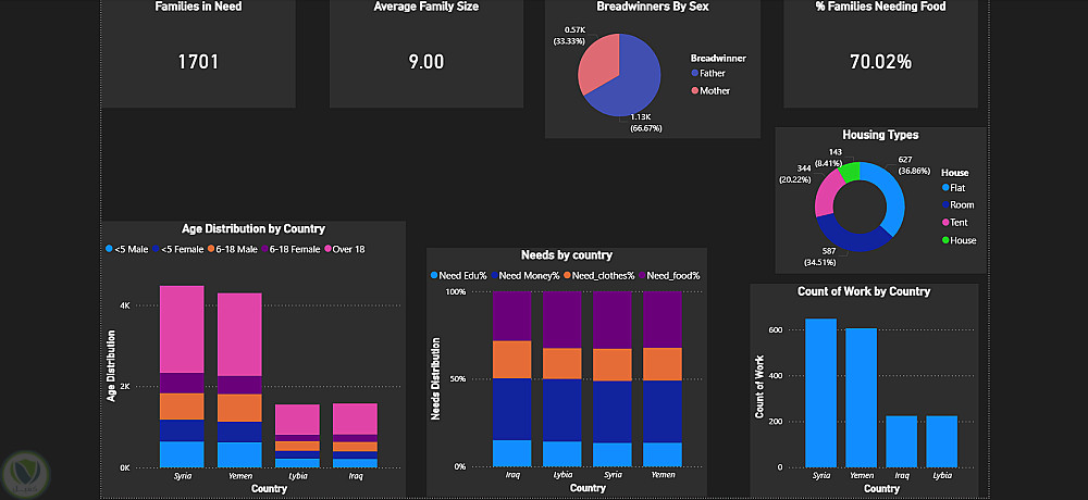 قمتُ بتصميم لوحة معلومات تفاعلية باستخدام Microsoft Power BI لتحليل بيانات العائلات المحتاجة في 4 دول، بهدف دعم الجهات الإنسانية في اتخاذ قرارات دقيقة لتوزيع المساعدات بشكل أكثر كفاءة وعدالة.