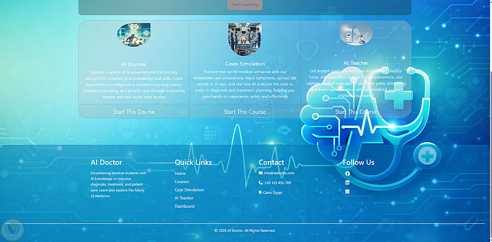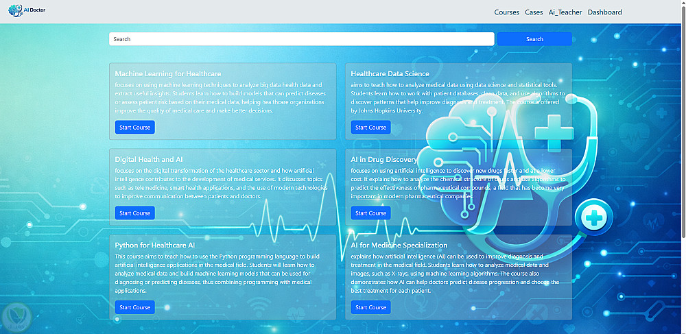 مشروع لبناء تطبيق ويب تفاعلي يساعد طلاب الطب على تعلم واستكشاف الذكاء الاصطناعي في المجال الطبي. تم تصميمه بواجهة مستخدم بسيطة وسلسة مع إمكانية التفاعل التعليمي.