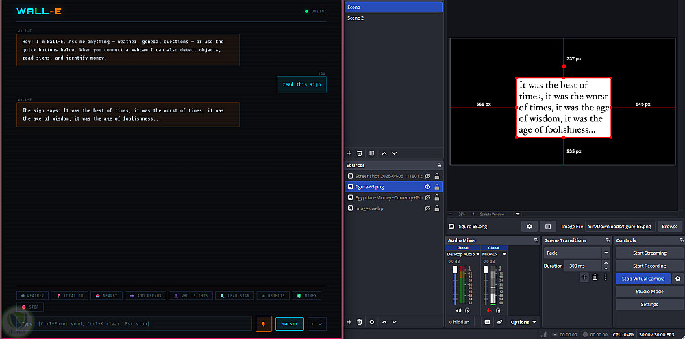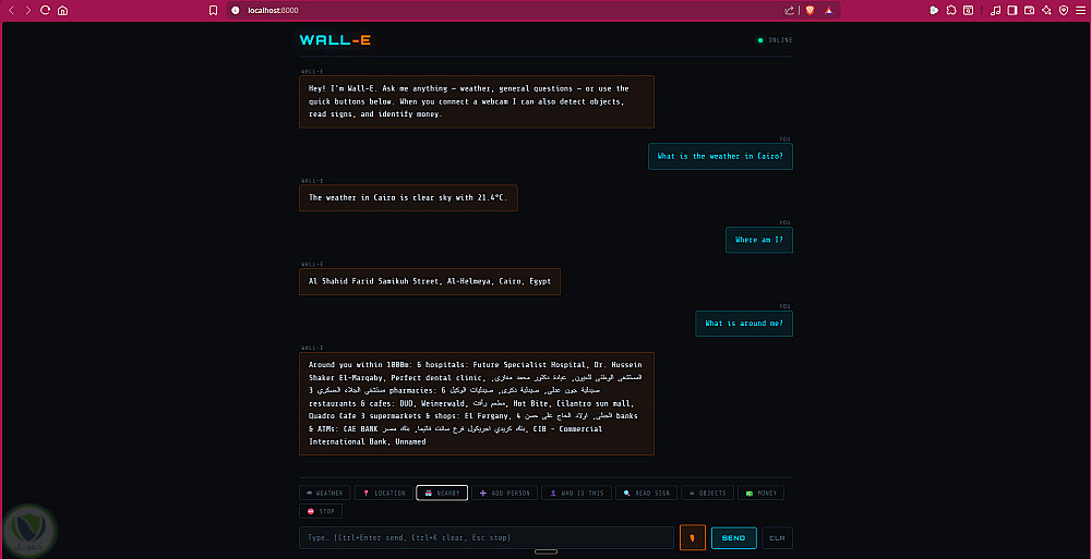 إنشاء مساعد ذكي قادر على فهم الأوامر الصوتية، تحليل الصور من الكاميرا، والتفاعل مع المستخدم بشكل طبيعي.