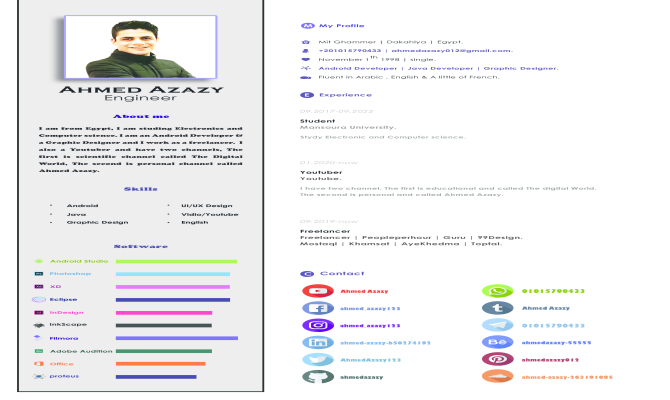 سيره ذاتيه مصغره لي استخدمت في تصميمها Adobe Photoshop and Adobe Indesign.