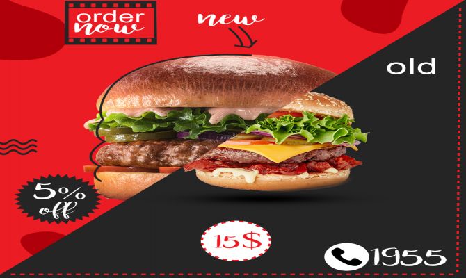 هذا التصميم للترويج عن البرجر الذي يقدمه مطعم وجبات سريعة لجذب العملاء للطلب من المطعم