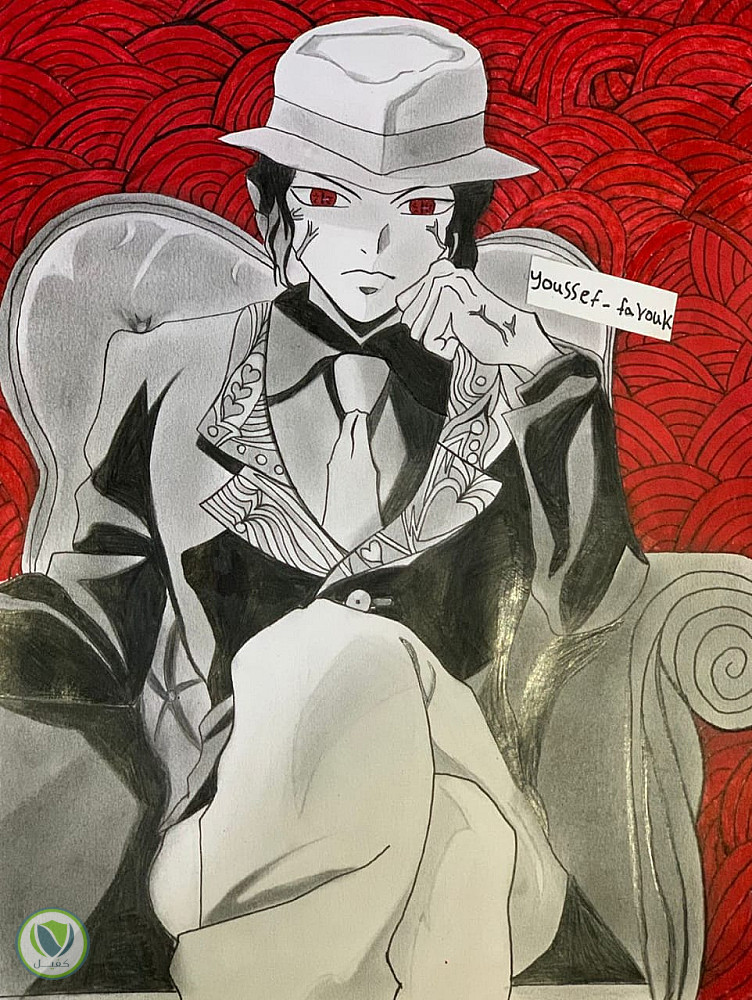 رسمه لشخصيه انمي من انمي demon slayer شخصيه شريره يطلق عليه القمر الاعلي حيث أنه اعلي رتبه في الشياطين من حيث القوه تريد أن تنهي البشريه