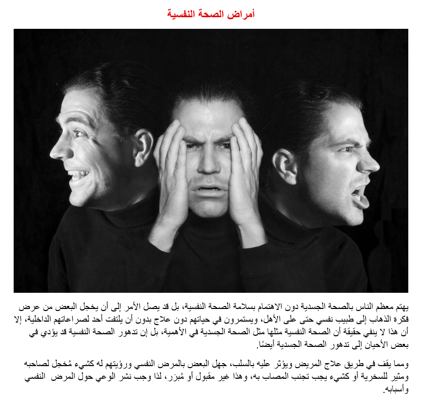 يُناقش المقال أمراض الصحة النفسية وأنواعها وأسبابها، ويطرح كذلك أعراضها ونتائجها.