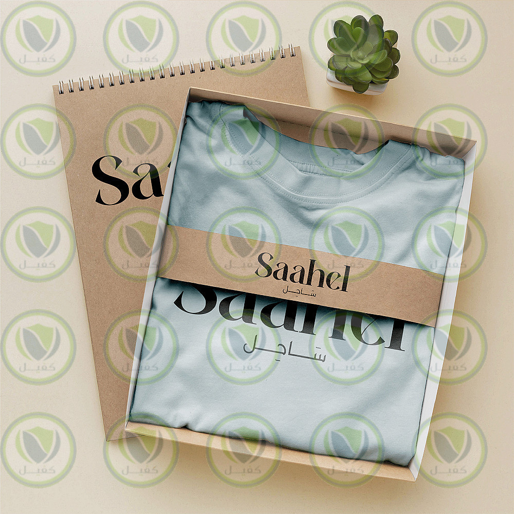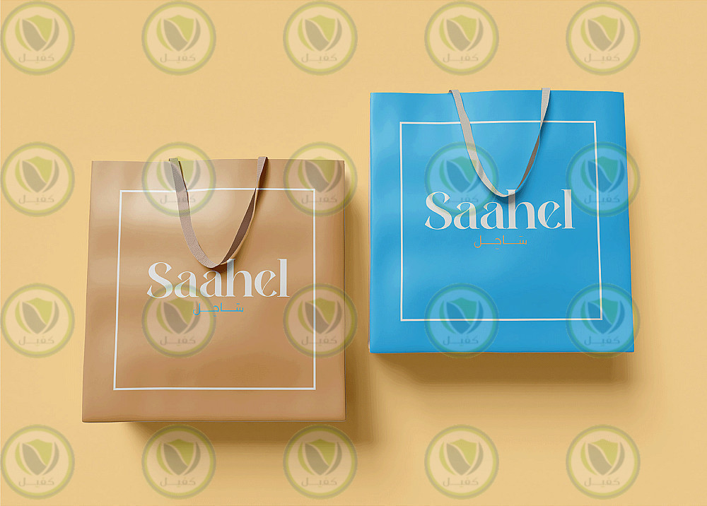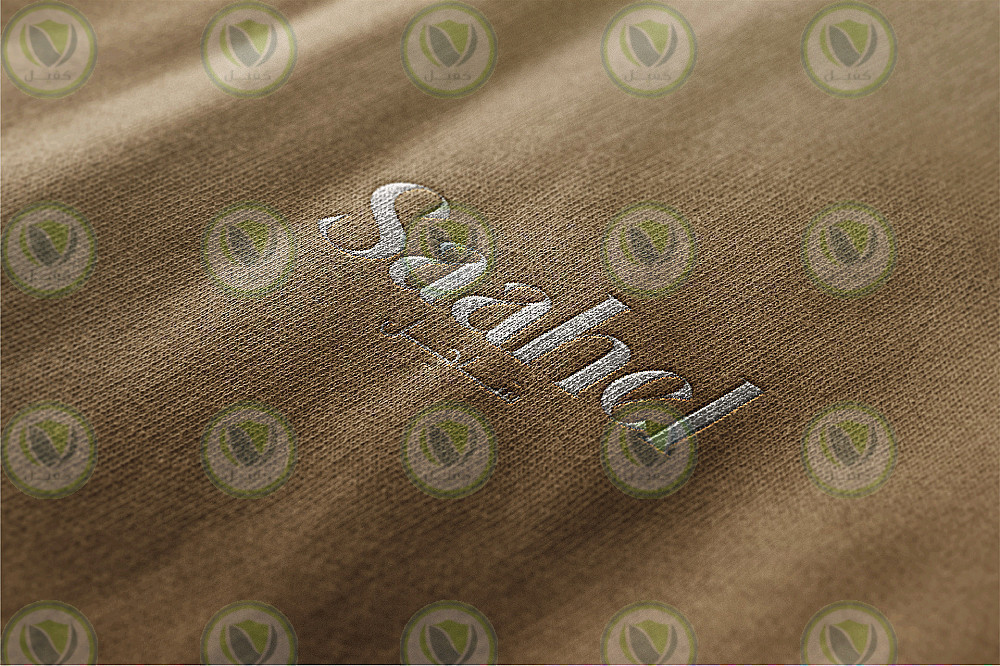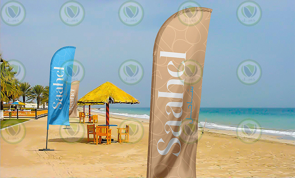براند قطري لملابس ساحلية اختيار الالوان كانت الوان الرمال والشاطئ واستخدام الكلمة والحرف الأول منها في استخراج نمط فني متكرر