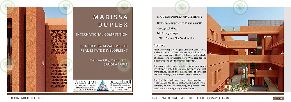 عبارة عن 25 وحدة دوبليكس في مركب سكني مصمم بطريقة موديرن مع كونسيبت مستوحى من الهندسة المعمارية التقليدية للمنطقة