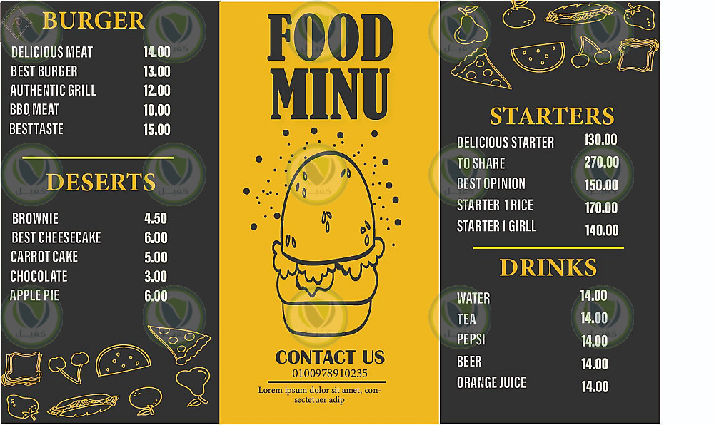 تصميم منيو مطاعم/كافيهات..علي برامج ادوبي