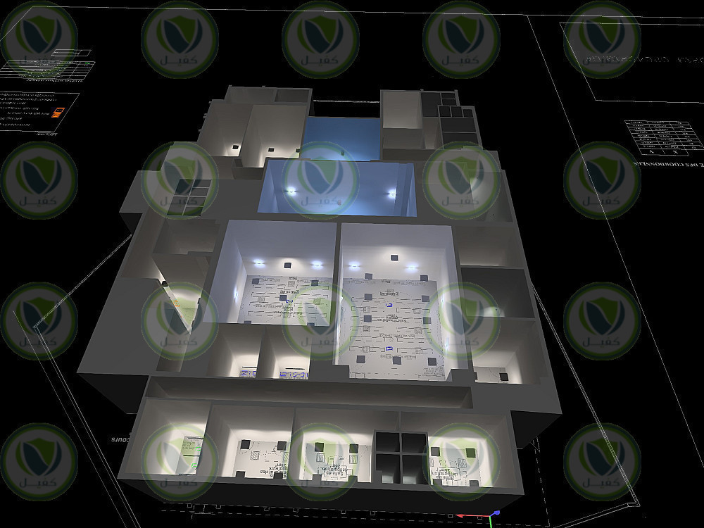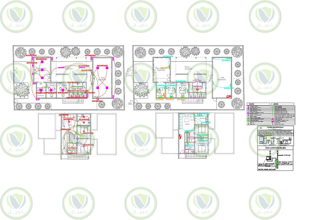- توزيع الانارة الداخلية بشكل تفصيلي وتحديد الابعاد بشكل دقيق وتوزيع المفاتيح الكهربائية.