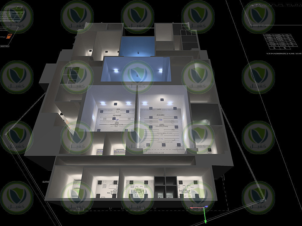 - تصميم منظومة إنذار الحريق وتحديد أماكن الحساسات وعدد اللوبات ومسار الكابلات للمنظومة.
