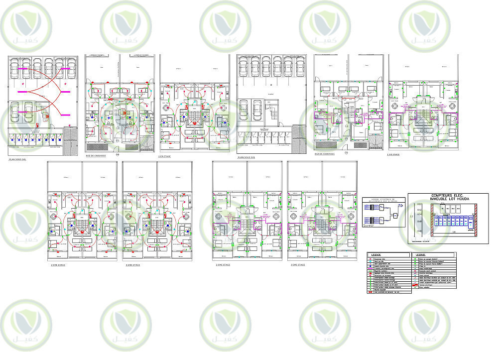 - توزيع المآخذ حسب الفرش المعماري للمبنى وتحديد المآخذ الخاصة والمآخذ ضد الماء والارتفاعات والابعاد والتفريعات الكهربائية.