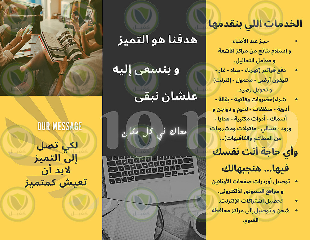 عمل بروشور يوضح الخدمات وتعريف الشركة وبيانات الاتصال