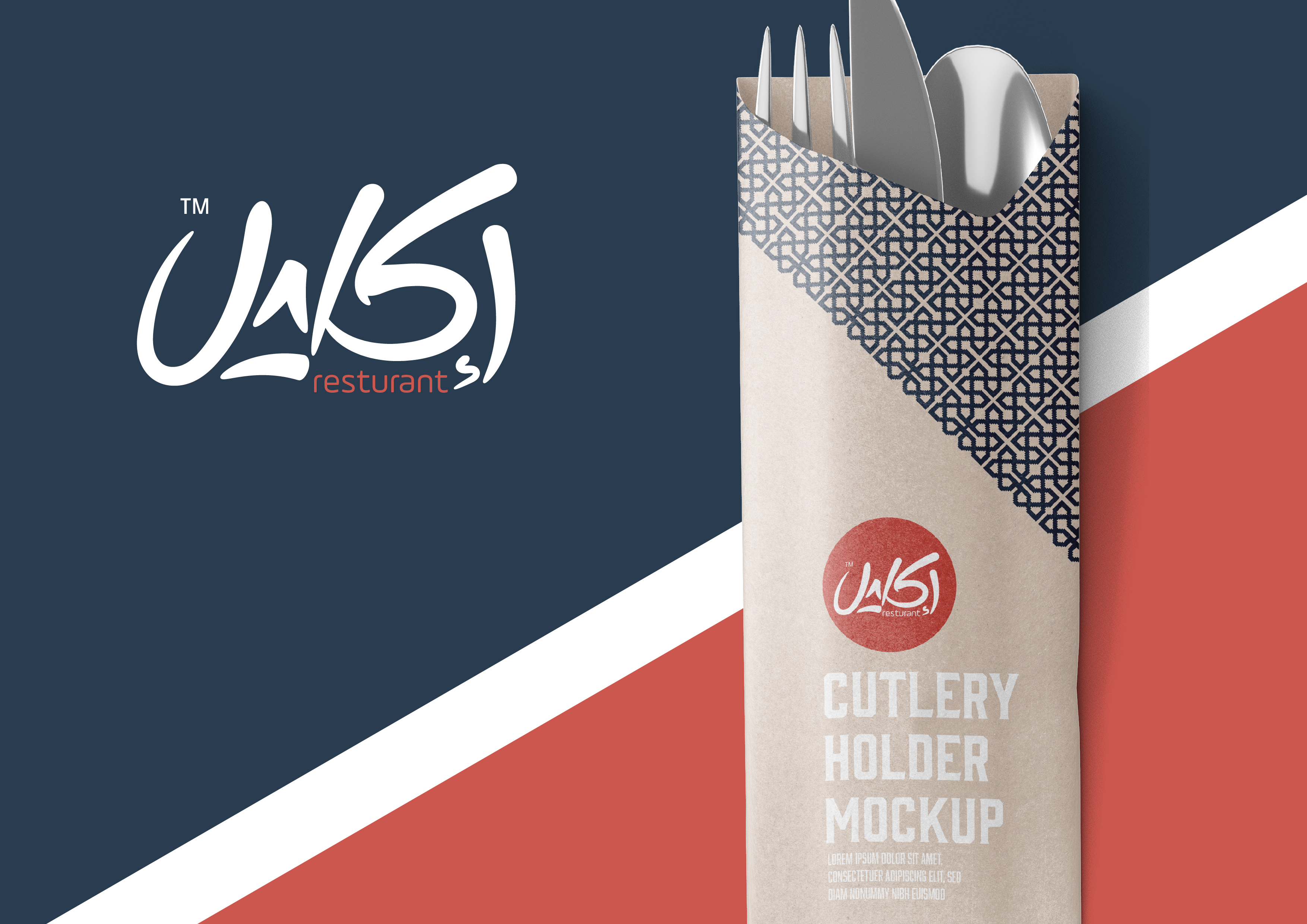 تم تصميم الشعار بشكل تايبوجرافي مناسب ومتناسق الألوان لمطعم مأكولات