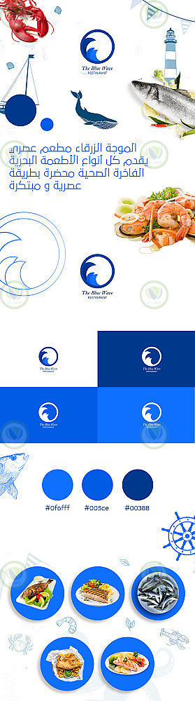 هذا العمل عبارة عن تصميم هوية بصرية لمطعم المأكولات البحرية المسمى بالموجة الزرقاء . الهوية لبصرية لهذا المطعم إشتملت على تصميم شعار مناسب و معبر و يرمز للبحر و مأكولاته حيث تضمن رسم لثلاث أمواج . أما في ما يخص الألوان قمت بإعتماد اللون الأزرق السماوي بتدرجاته لإعطاء الشعار نوع من التناسق و راحة لعين المتصفح و المشاهد لهذا الشعار . كذلك قمت بتصميم تخيلي و تقديم فكرة لملابس الطباخ و الناذل حيث تضمنت اللون الأزرق و الشعار لاعطاء نوع من التناسق و الملائمة و كذلك قمت بتصميم مانيو menu بشكل بسيط و سهل القراءة و ذلك لتجنب تشتيت عين الزبون حول الأطباق المقدمة و العرض الترويجي المقدم . طبعا الهوية التجارية للمطعم تكون أكبر من ما قدمته يعني تضم كروت شخصية و يمكن بوسترات ترويجية لكن أنا اكتفيت بهذه العناصر. أتمنى أن تكون قد استمتعت بهذا العمل و اتمنى ان يكون لنا تعامل جديد لذلك لا تترد في التواصل معي