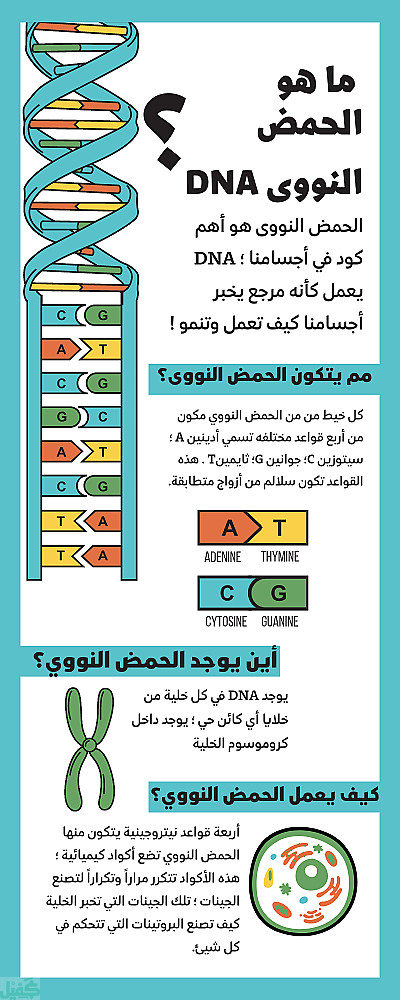 انفوجرافيك تعليمي عن ما هو الحمض النووى DNA ما تركيبه وكيف يعمل