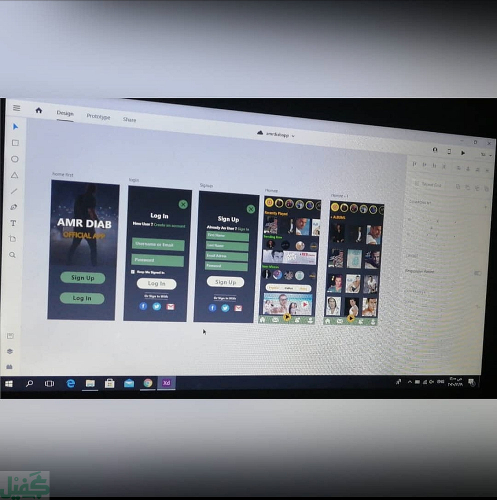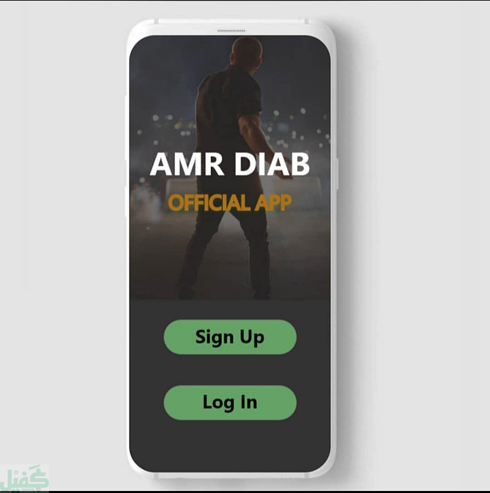 تصميم تطبيق موبايل للموسيقي خاص بالفنان عمرو دياب ، من تصميمي الخاص ، تصميم يوضح واجهه و تجربه المستخدم