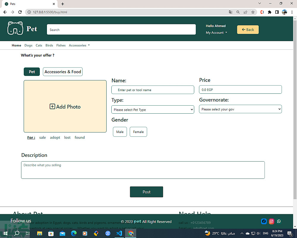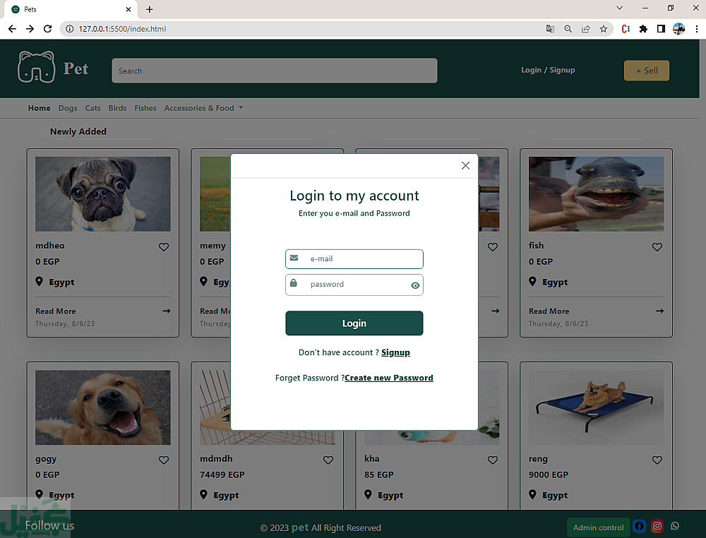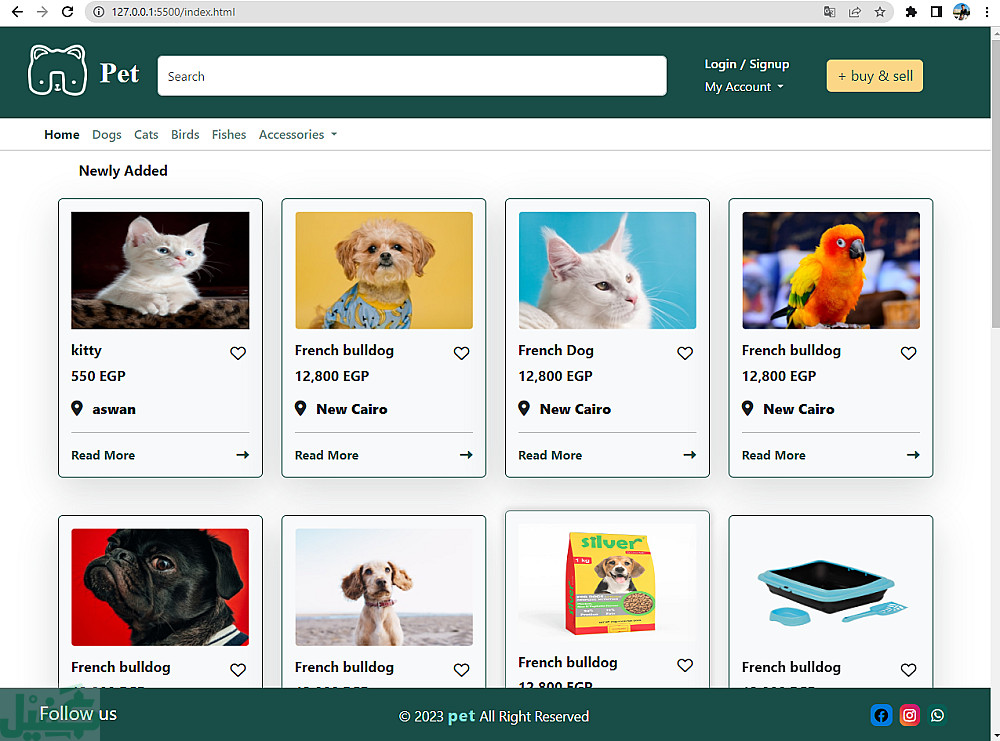 موقع الكتروني كامل للاعتناء بالحيوانات الاليفه ومستلزماتها . يشمل بيع وشراء واضافة اعلان وبه قسم لاقرب العيادات الموجوده بالقرب منك بالاضافه الي امكانية البحث عن طريق الاسم او السعر او النوع او البلد