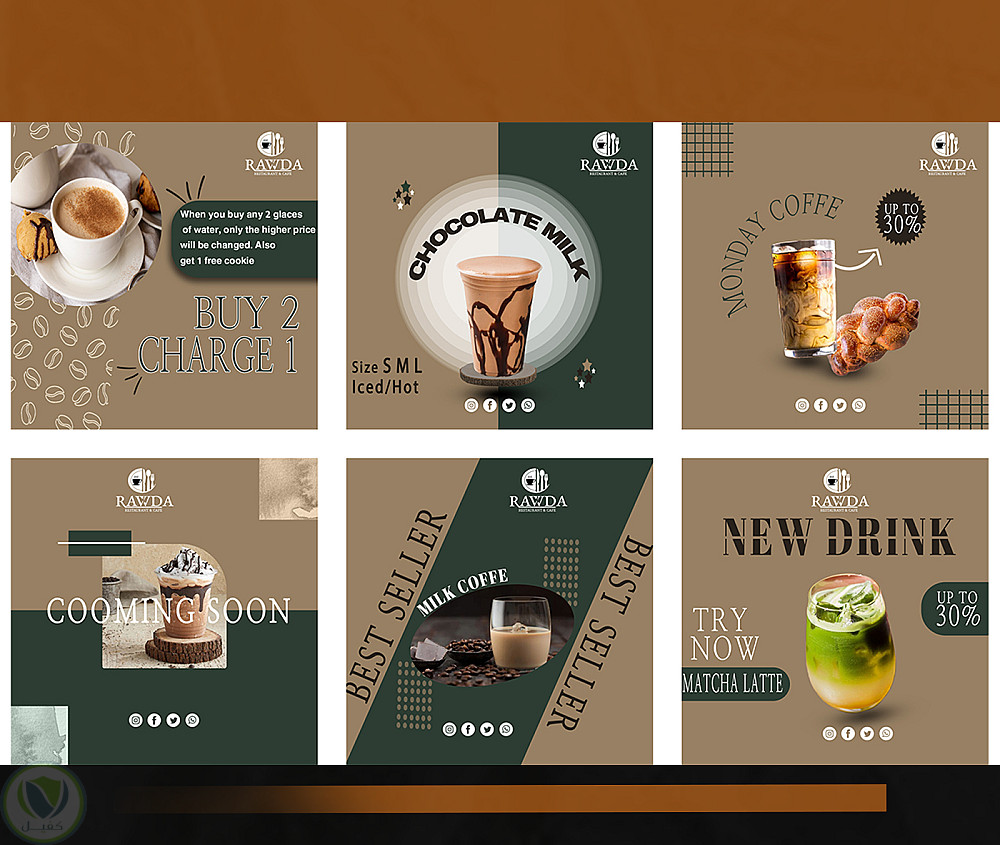 إليكم بعض اعمالي في تصميم بوستات سوشيل ميديا لكافيه