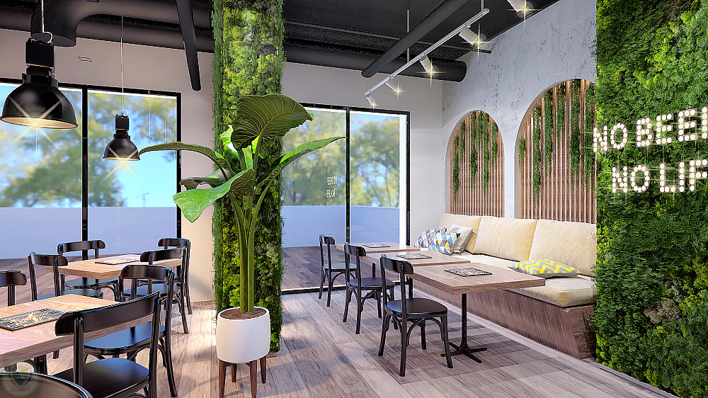 تصميم داخلي لمطعم مدة العمل على التصميم: اسبوع البرامج المستخدمة للتصميم:, Photoshop,3ds max , autocad , After Effect
