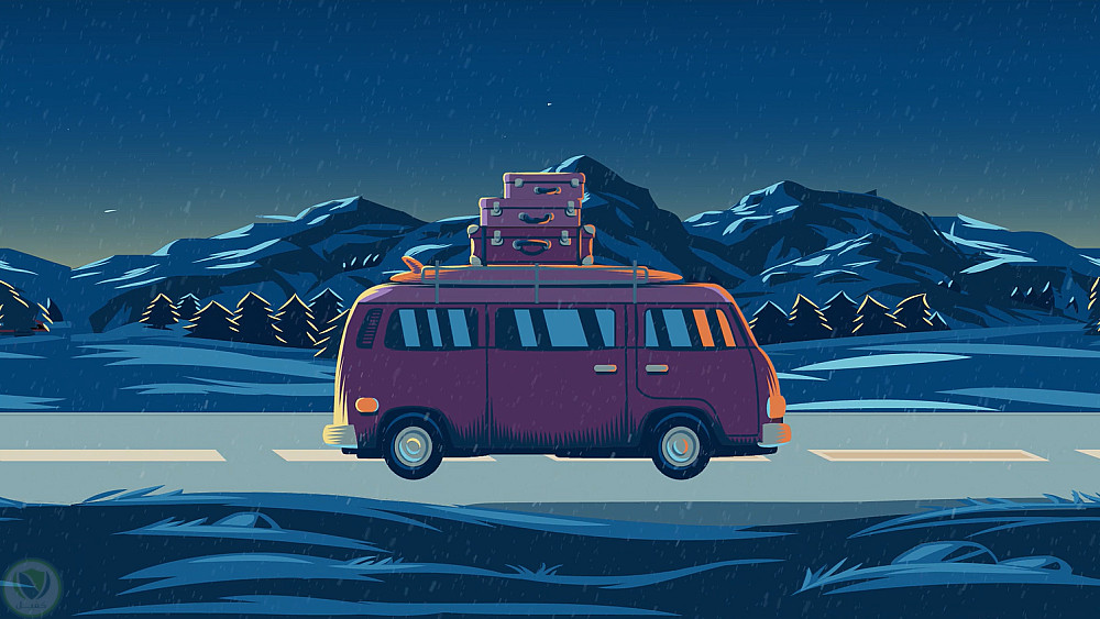 مقاطع متحركة لسيارات، حافلات، قطارات وطائرات، مع انتقالات سلسة بين المشاهد.