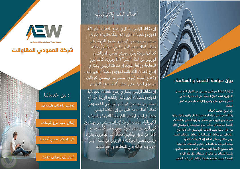 عبارة عن بروشور تعريف عن شركة والخدمات الي تقدمها تم استخدام برنامج photoshop and InDesign