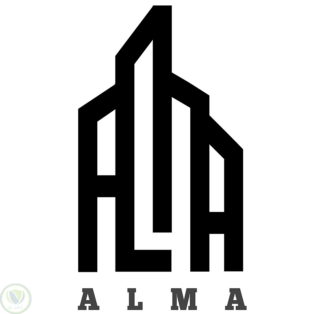 شعار شركة ALMA يتألف من حروف كبيرة مكتوبة بخط هندسي متين باللون الأسود، مما يمنح الشعار طابعًا حداثيًا وقويًا. الشعار مكون من الحروف الأربعة (A L M A) التي تم تصميمها بطريقة متشابكة لتكوين شكل متكامل يشبه بناء أو برج، مما قد يرمز إلى القوة والصلابة وربما الطموح في النمو والارتفاع. في الجزء السفلي من الشعار، توجد كلمة ALMA مكتوبة بخط مختلف قليلاً، ويبدو أنها بنفس اللون ولكن بحجم أصغر.