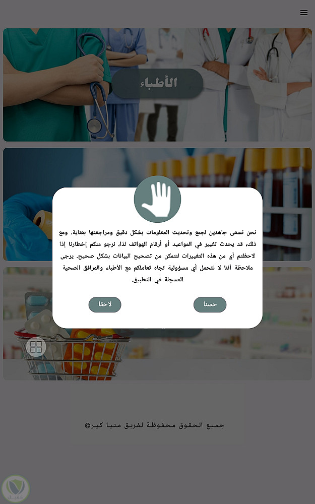 *تطبيق يقوم بعرض الاطباء في كل تخصص في محافظة المنيا بمصر