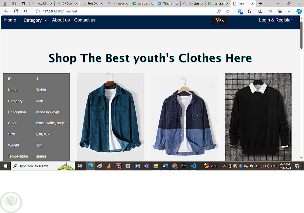 قمت بتصميم وبرمجة متجر الكتروني لبيع ملابس الشباب والأطفال والسيدات.