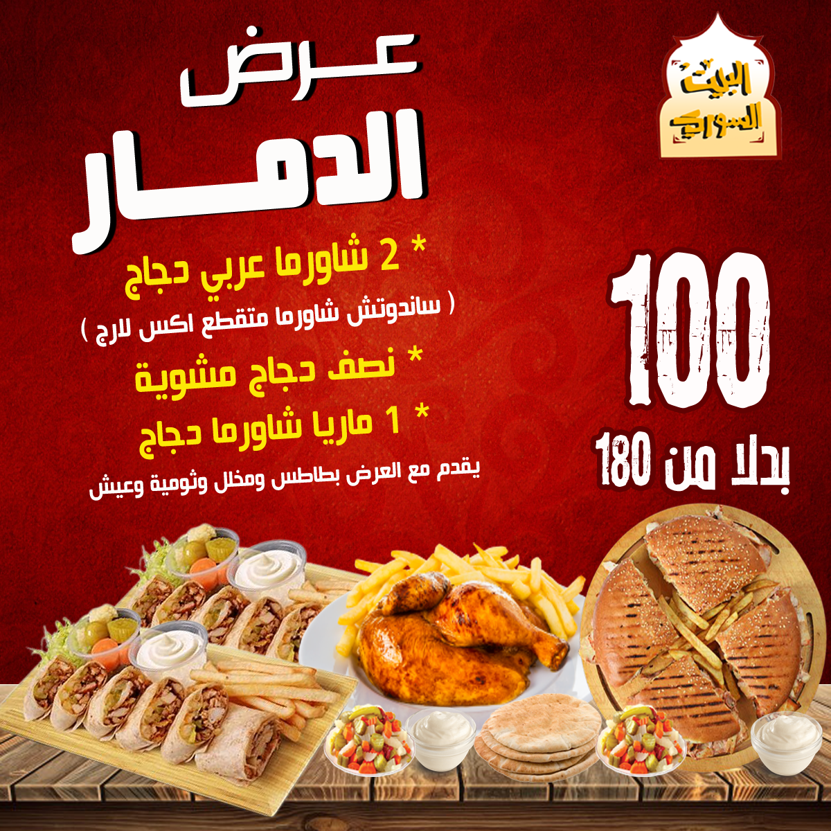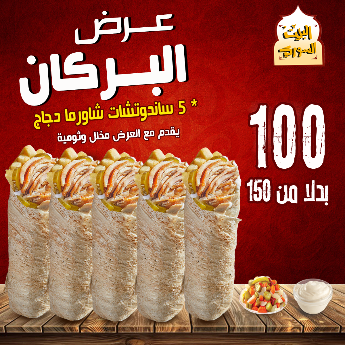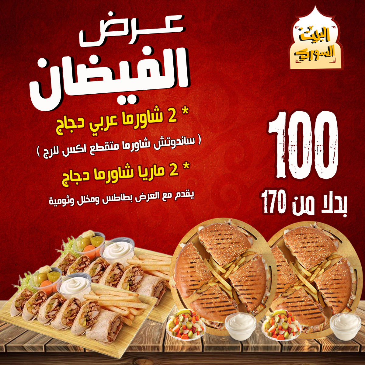 تصميمات سوشيال ميديا لمطعم البيت السوري عبارة عن عروض وتخفيضات علي أسعار الساندوتشات