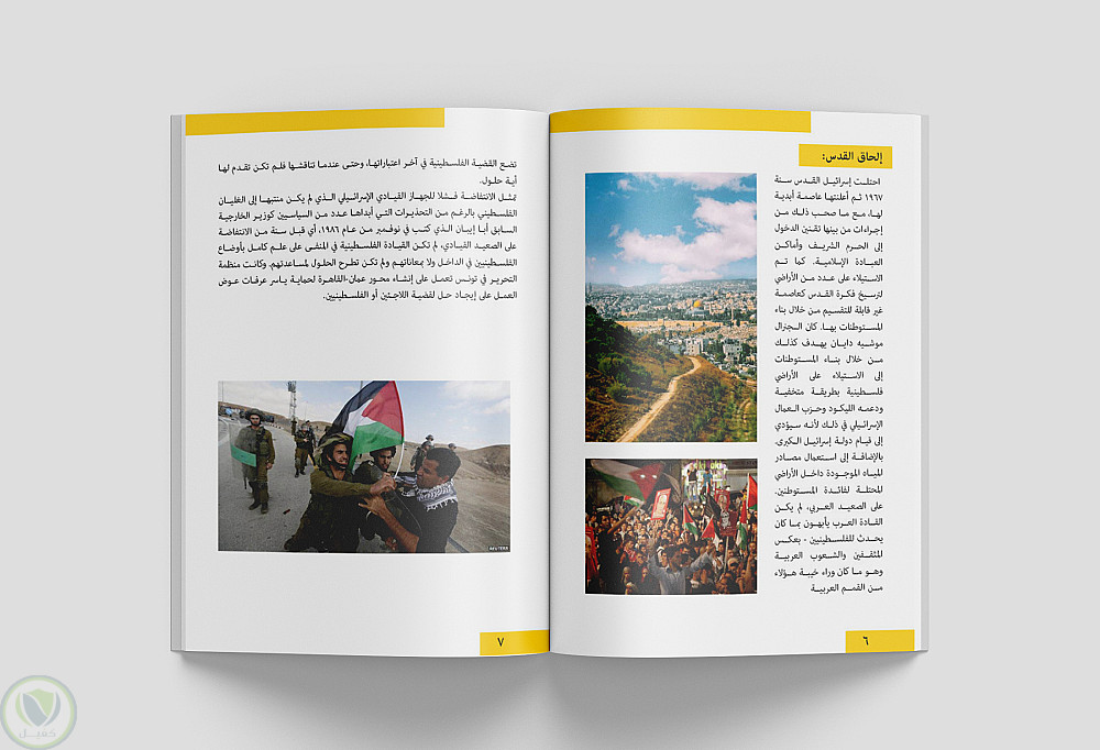 تم تصميم مجلة مميزة مخصصة لفلسطين، تحتوي على 30 صفحة من المحتوى الإبداعي والمتنوع. تتميز المجلة بجودة تصميم عالية، تجمع بين النصوص الجذابة والصور المميزة لتسليط الضوء على قضايا فلسطين وتراثها وثقافتها.
