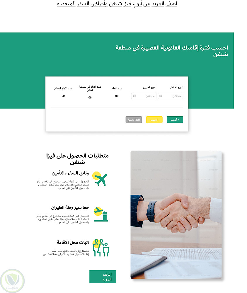تبسيط هيكل الموقع وإعادة تصميم الصفحات لاعداد طلبات التقديم للحصول على فيزا شنغن.