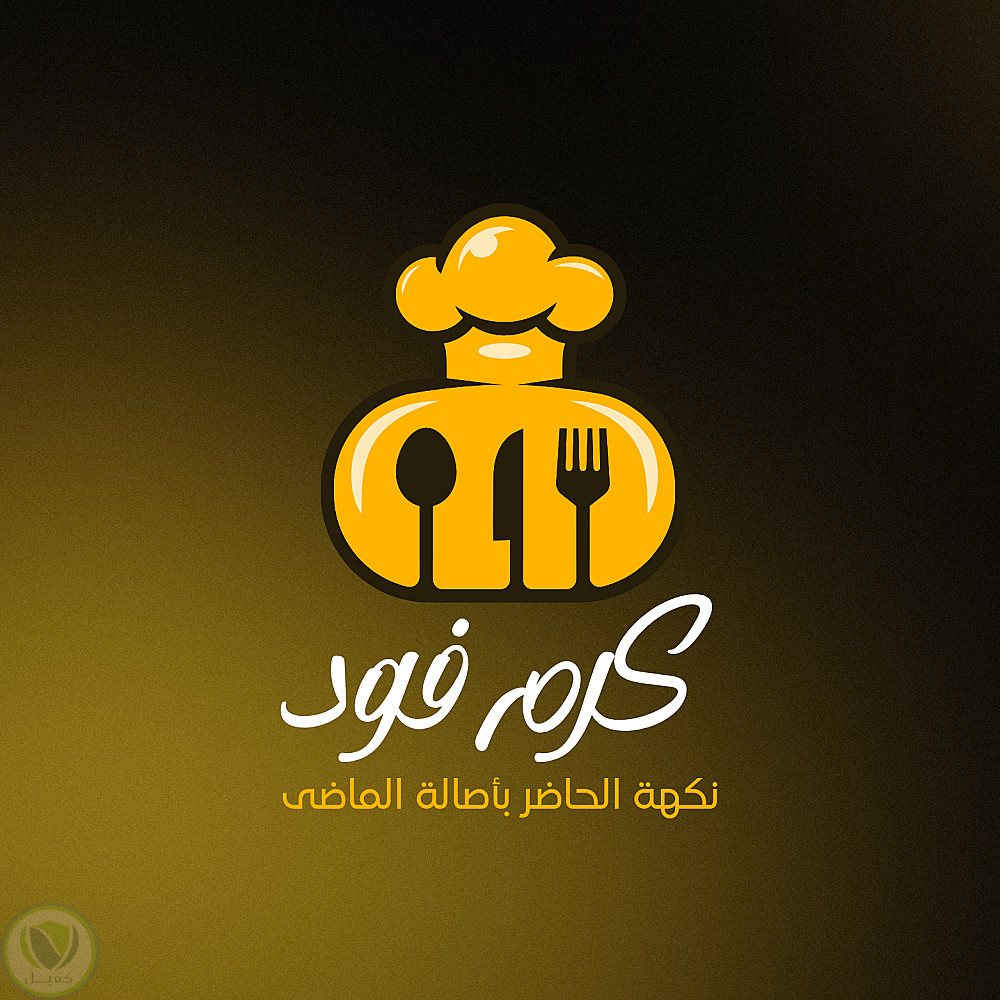 التصميم عباره عن قبعة شيف بها ادوات الاكل مع اسم المطعم و slogan ابداعى يوصف المطعم
