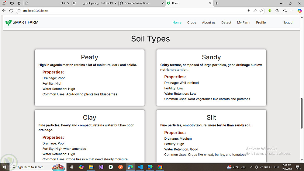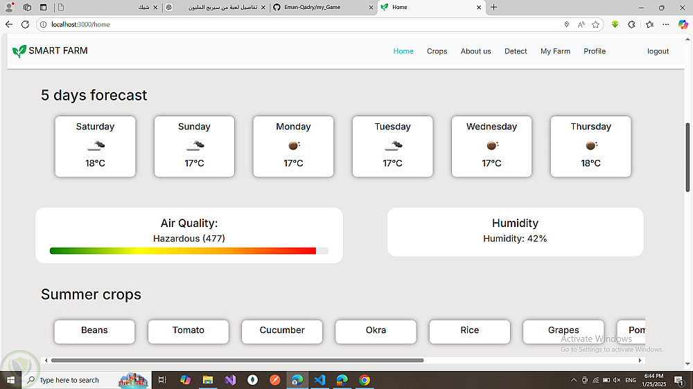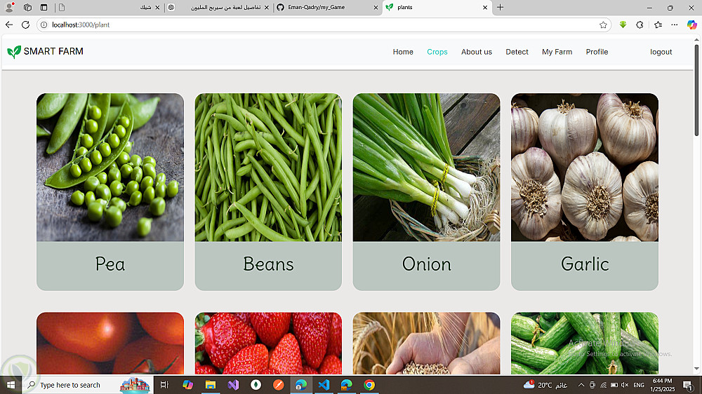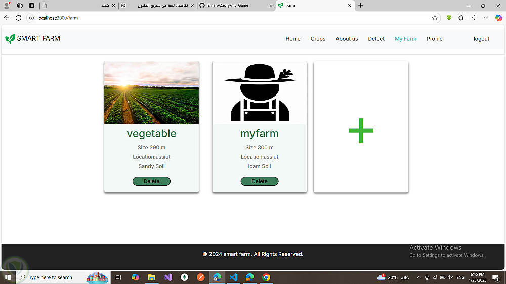 مشروع Farm هو نظام متكامل لإدارة المزارع، يهدف إلى تحسين كفاءة الزراعة من خلال ربط البيانات الحية من أجهزة الاستشعار (مثل الرطوبة ودرجة الحرارة) بالمحاصيل المزروعة. يتم تخزين البيانات في قاعدة بيانات حديثة مثل MongoDB مع واجهة ويب سهلة الاستخدام لعرض تفاصيل المحاصيل والحالة البيئية في المزرعة.