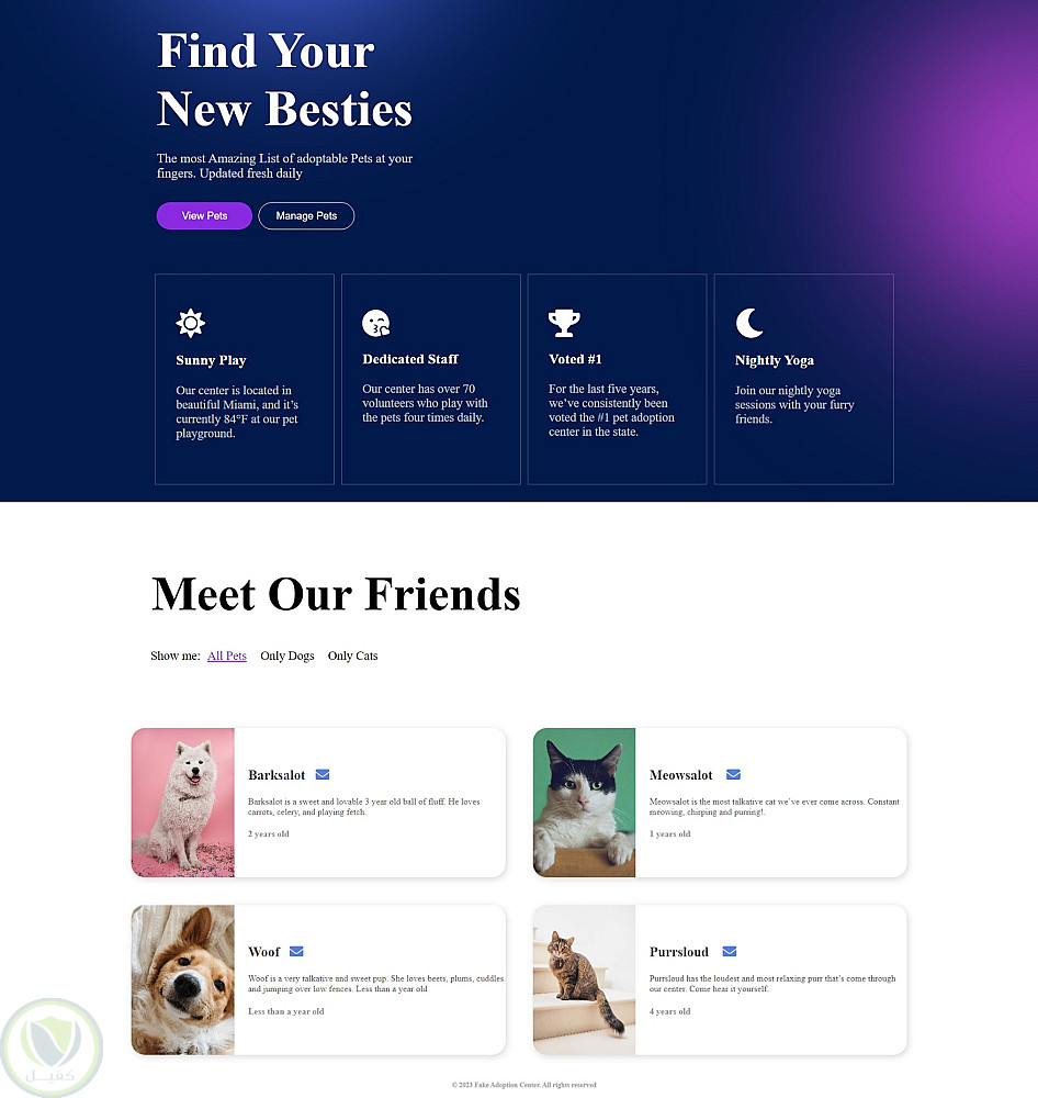 صفحة ويب لتبني الحيوانات الأليفة (Pet Adoption Website)