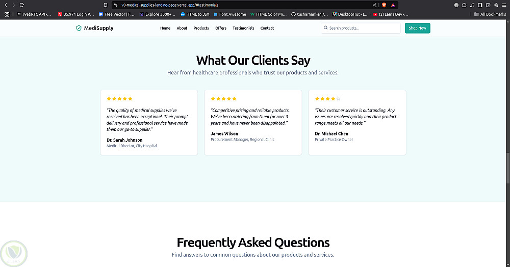 صفحة هبوط لشركة بيع مستلزمات طبيه بصفحات ديناميكيه