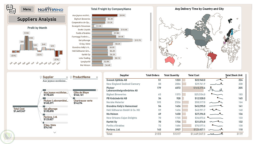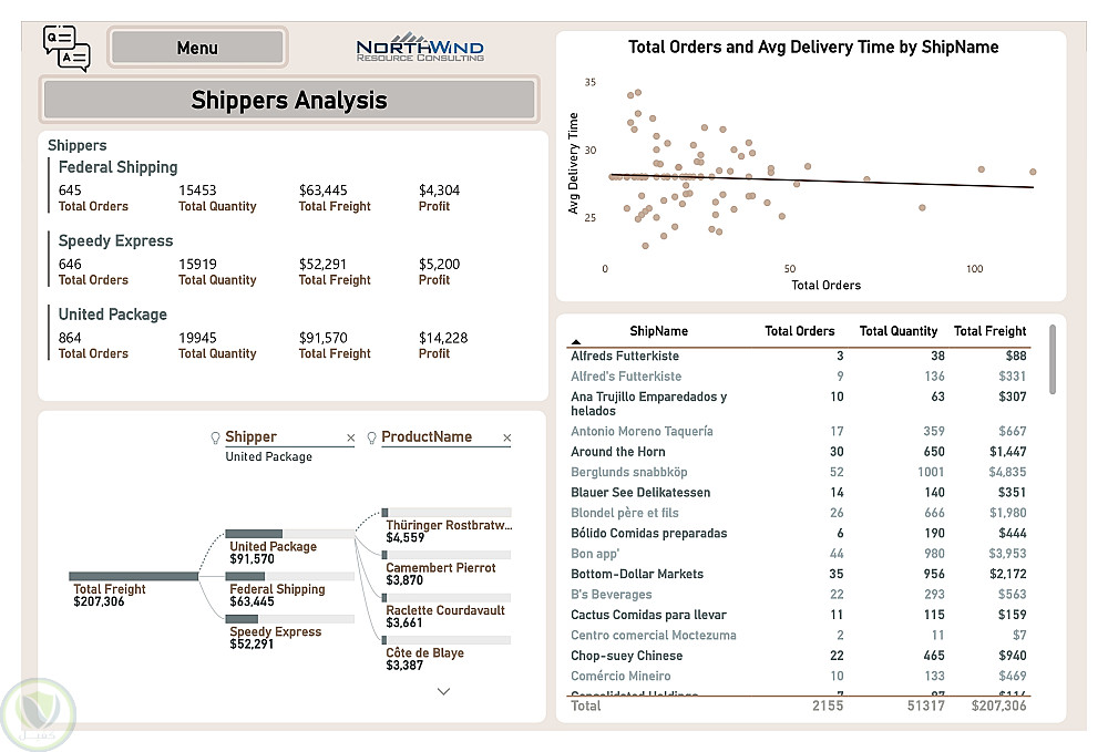 داشبورد لتحليل سلاسل التوزيع والإمداد وعمليات الشحن لشركة Northwind بإستخدام Power Bi