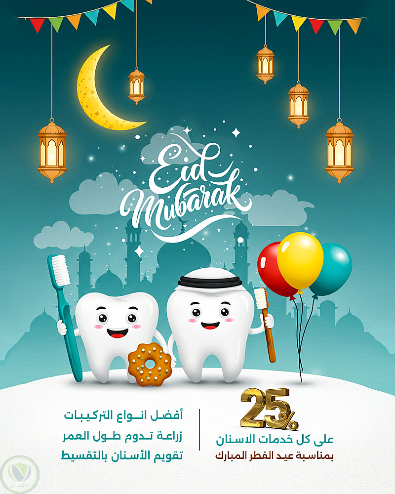 تصميم لعيادة أسنان بمناسبة عيد الفطر المبارك