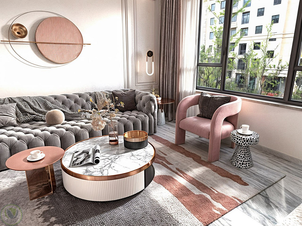 تصميم غرفه معيشه بألوان هادئه ومريحه