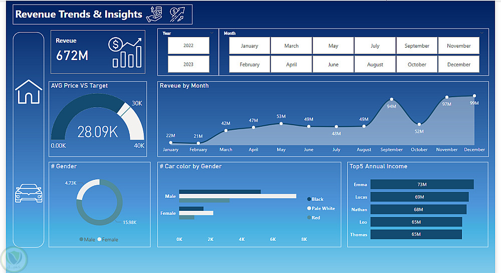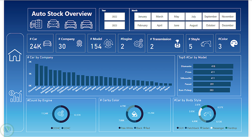 قمت بتطوير هذه لوحة معلومات Power BI لتحليل بيانات معرض السيارات، مما يوفر رؤى قيمة حول أداء المبيعات، حالة المخزون، وتفضيلات العملاء.