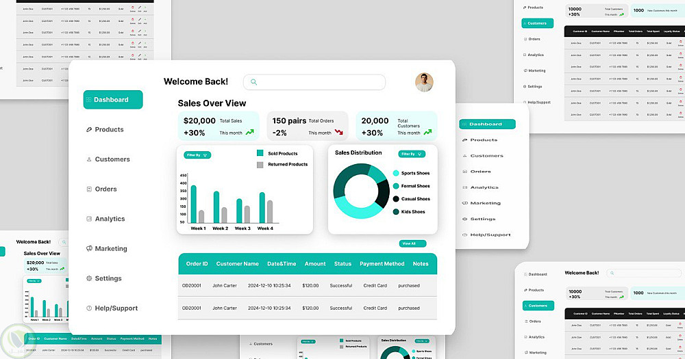 E-commerce Dashboard: يتابع المبيعات و الطلبات لتحسين الأداء وزيادة المبيعات.