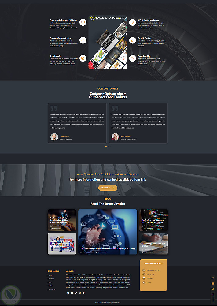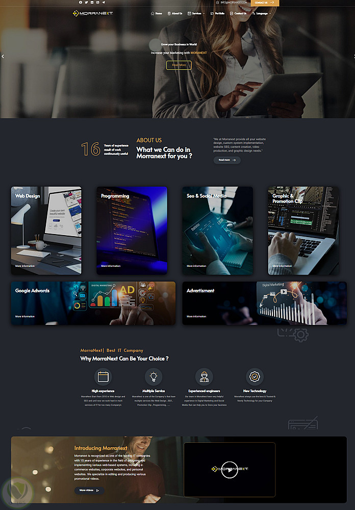 تصميم موقع انترنت لعميل يعمل في مجال الدعاية والاعلان والتسويق. قمنا بتصميم هذا الموقع من الصفر إلى المائة وترجمناه إلى ثلاث لغات: الإنجليزية والعربية والفارسية. بالإضافة إلى ذلك، قمنا بإعداد محتوى الموقع وفق حدث المعلومات.
