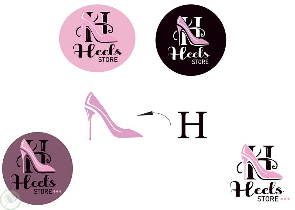 شعار Heels Store هو تصميم أنثوي راقٍ يجمع بين الأناقة والبساطة. يرتكز على دمج عنصر بصري (حذاء كعب عالي وردي) مع الحرف "H"، في إشارة إلى اسم البراند.