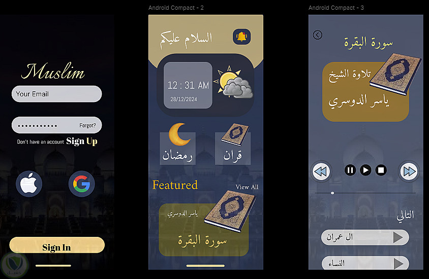 🌙 الشاشة الثانية: الواجهة الرئيسية