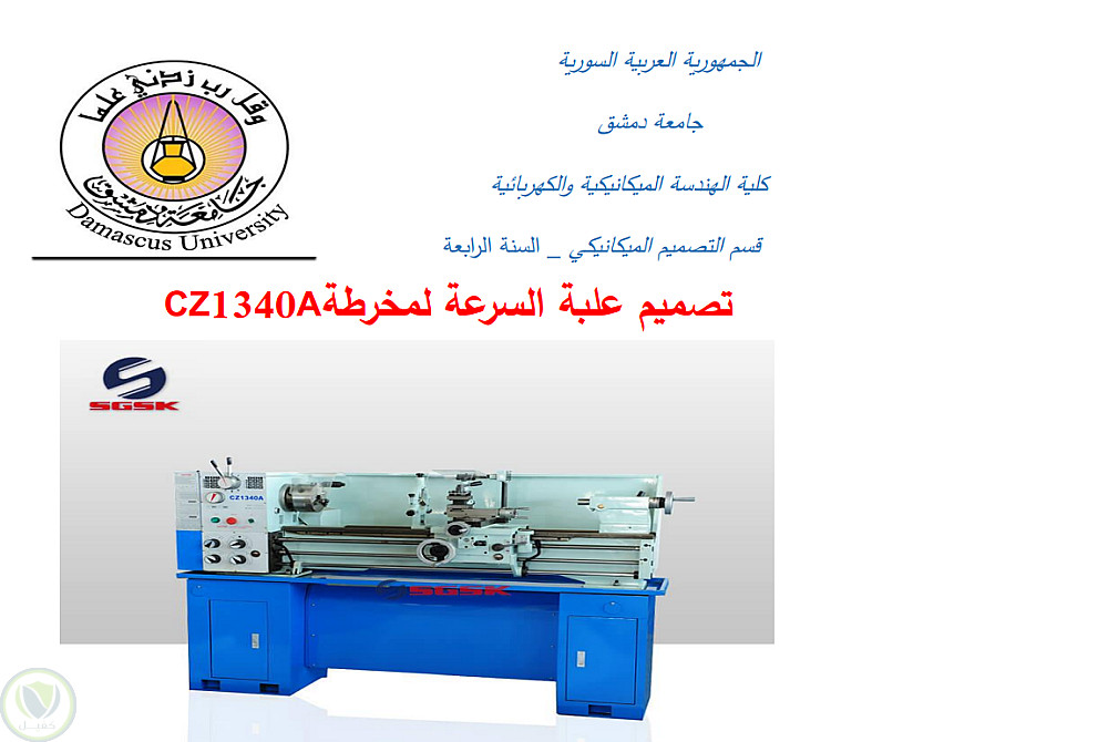 قمت بالحسابات التصميمة لتصميم علبة سرعة مخرطة واختيار ابعاد الاعمدة والمسننات المطلوبة لذلك مع دراسة الحركة الميكانيكية والميكانيزم وقمت بترتيب هذه الدراسة وفق ملف pdf