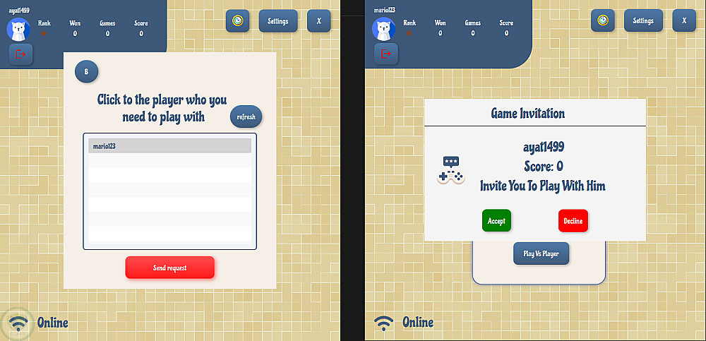 عبر الإنترنت: الاتصال بلاعبين آخرين، إرسال وقبول الطلبات.