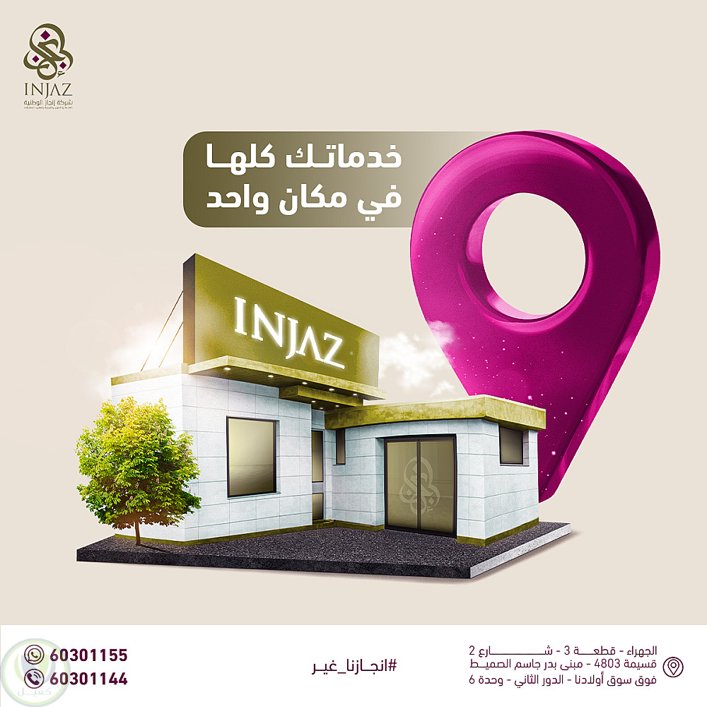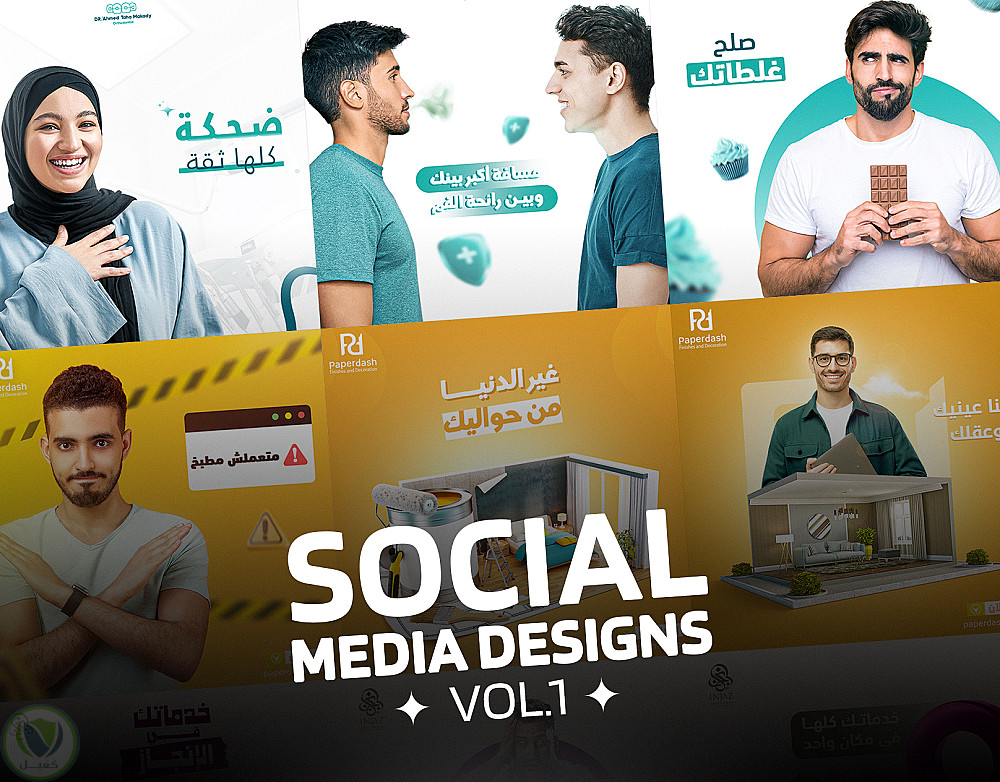 تصاميم سوشيال ميديا تضم مجالات عديدة, عيادة أسنان, شركة تشطيبات وتصميم داخلي, شركة إنجاز الوطنية للطباعه والتصوير والترجمة