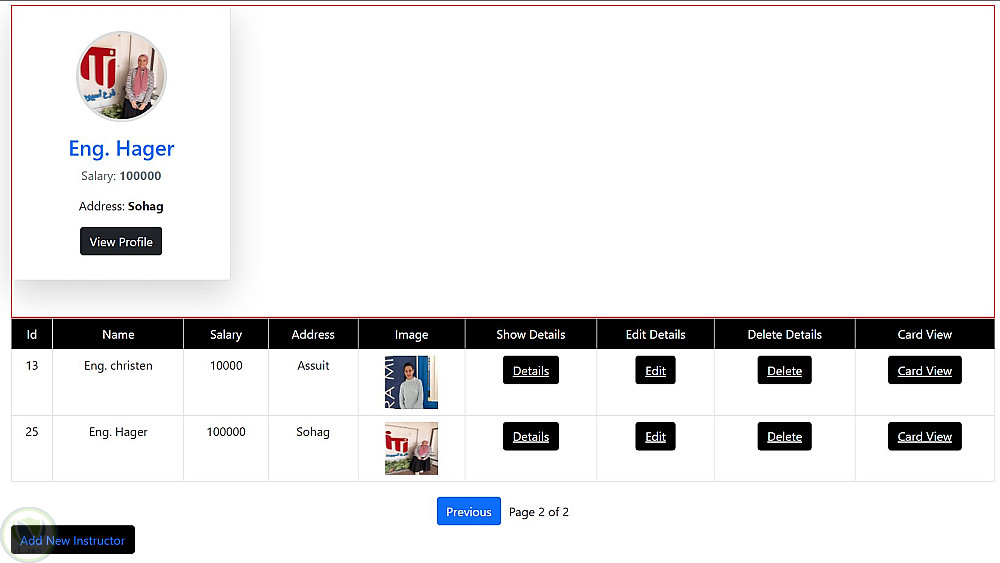 قمت بتطوير نظام ويب باستخدام ASP.NET MVC لإدارة بيانات المحاضرين. النظام يحتوي على لوحة عرض للمدربين تشمل: