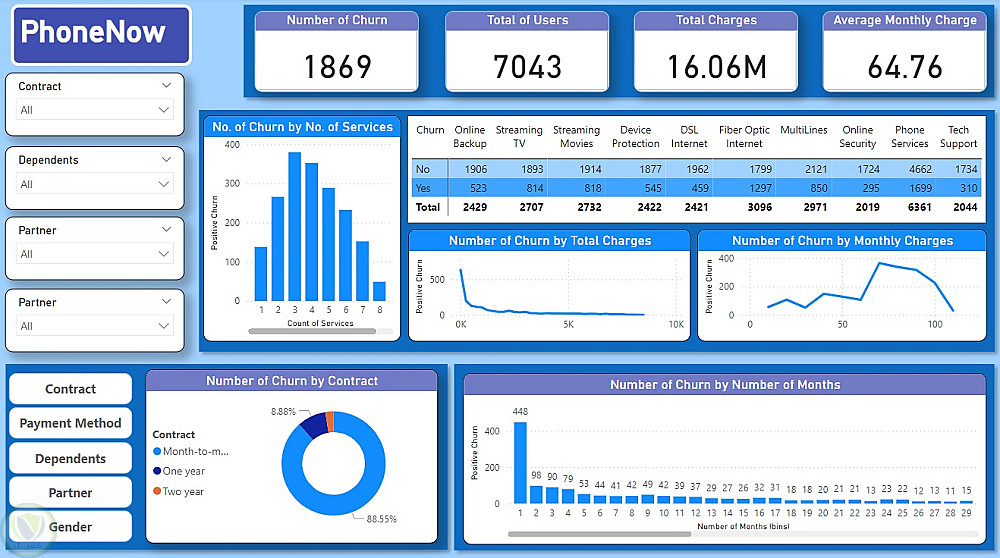 تحليل البيانات لشركه PhoneNow شركه اتصالات وانترنت.